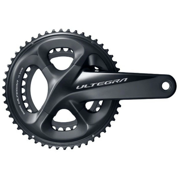 Considéré comme une pièce maîtresse de la transmission, le pédalier Shimano Ultegra R8000 reprend le design du FC-R9100 et ses 4 branches asymétriques à entraxe unique de 110mm, ainsi que ses manivelles surdimensionnées et allégées, améliorant la rigidité et le transfert de puissance.